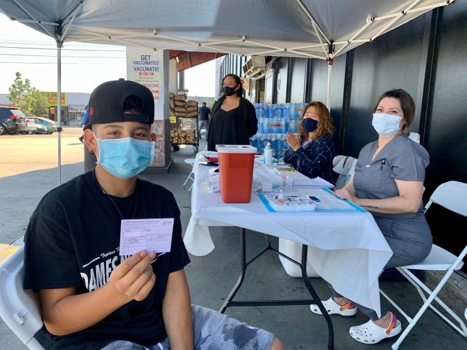 La clínica móvil del mercado Vallarta fue parte de Vaccine Express o Vacuna Móvil, un programa piloto para aumentar las vacunas en las comunidades latinas de Los Ángeles