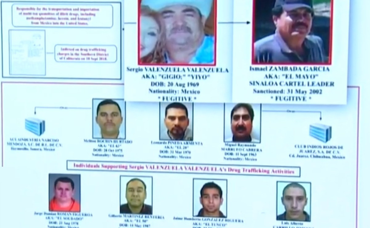 “Desde septiembre de 2018, existe una acusación federal por tráfico de drogas en el Distrito Sur de California contra Valenzuela Valenzuela, quien es un fugitivo por los cargos actualmente“.