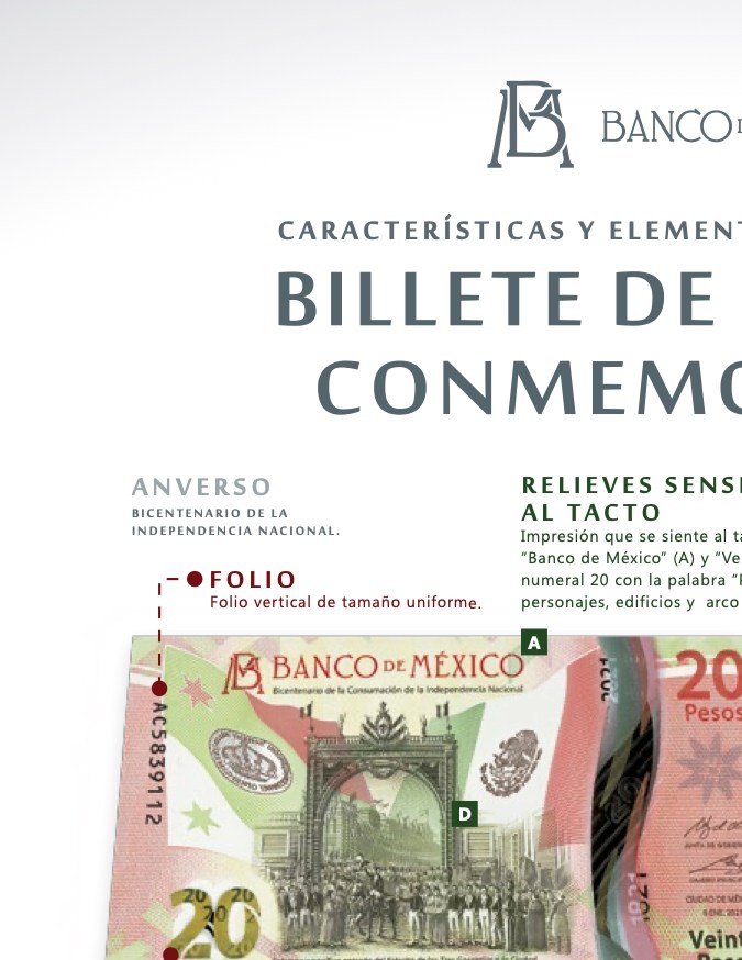 El billete de 20 pesos de México tiene un formato mixto, pues su anverso es horizontal y su reverso vertical, una característica que han adoptado ya otros países como Canadá o Venezuela.