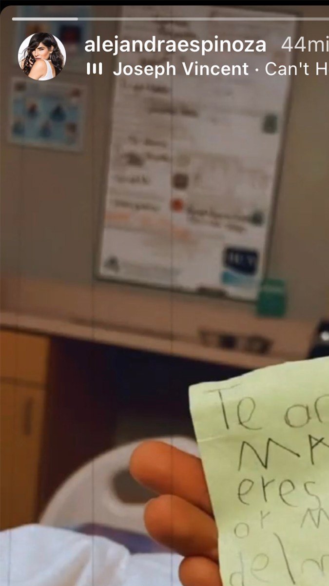 Alejandra Espinoza está hospitalizada después de sufrir parálisis en parte de su rostro… Desde el jueves en la noche, la querida presentadora de ‘Nuestra Belleza Latina’ preocupó al publicar un cariñoso mensaje de su hijo, Matteo, en donde se podía ver que portaba un brazalete, en el que se leía que estaba ingresada en un nosocomio desde el 3 de octubre.