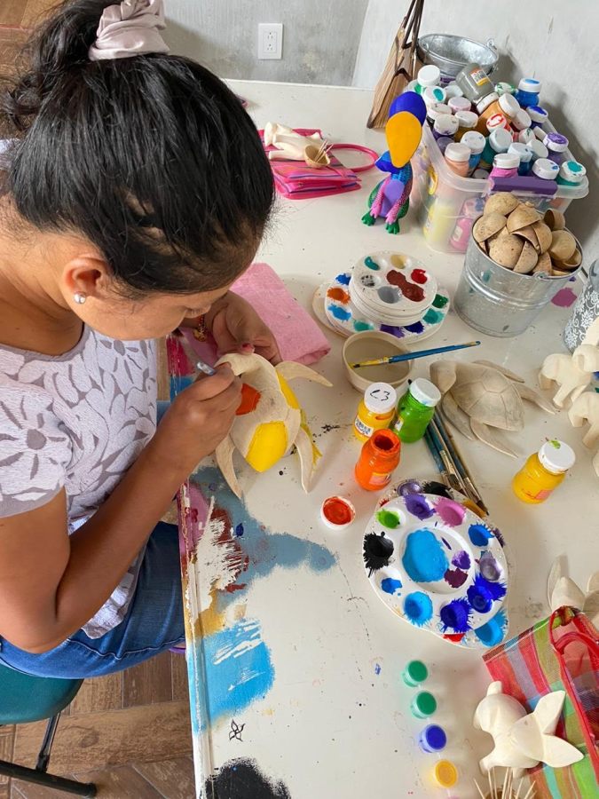 El taller de pintura “Pinta tu Alebrije” es organizado por Xti’Artisan, un proyecto de promoción, difusión y venta de arte popular que trabaja bajo los valores de comercio justo hacia las familias de artesanos.