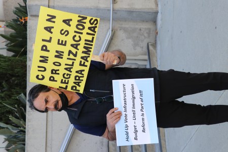 Líderes de la comunidad presionan a Tony Cárdenas y Jimmy Gómez con plantones frente a sus oficinas para que no firmen el plan de Biden si no incluye la reforma migratoria