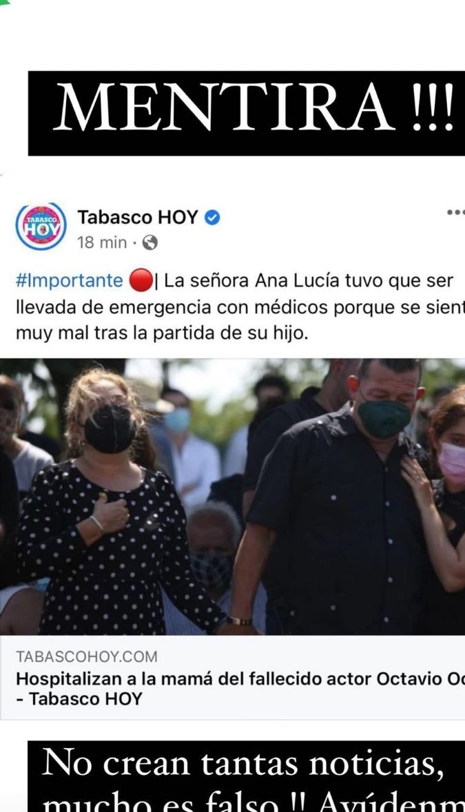Al respecto, un periódico de Tabasco difundió información en la que aseguraban que la madre de Octavio Ocaña había sido hospitalizada, esto tras el dolor por el fallecimiento de su hijo.