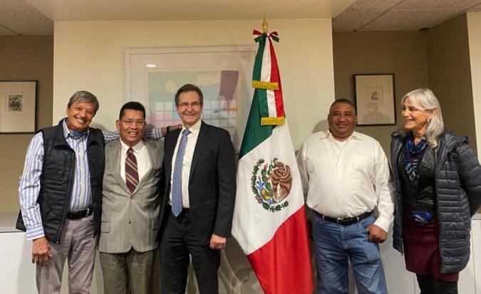 “Sepa que durante su estancia en Washington D.C., estará acompañado de nuestro apoyo, cariño y fuerza para que pueda cumplir, enaltecer y hacer brillar a México a la hora de sostener históricas conversaciones con los presidentes de Canadá y Estados Unidos”, le dicen más de 87 líderes de organizaciones migrantes en una carta que le entregaron al embajador Moctezuma.