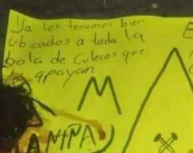 En el narcomensaje se leía: “Ya los tenemos bien ubicados a toda la bola que los apoyan. Este es un regalito para todos los chapulines que apoyen a las perras flacas jaliscas. Vendidos mordieron la mano de quien los apoyó. Aquí seguimos porque Acámbaro ya tiene dueño, su mero padre CSRL. Atte. La Niña“, sentenció la presunta mujer sicario.