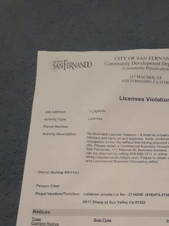 Pero además le dieron una advertencia por escrito en la que establecen que si lo vuelven a ver lavando carros por los vecindarios de San Fernando, le aplicarían una multa de entre $500 a $1,000, y le decomisarían su camioneta e implementos de trabajo.