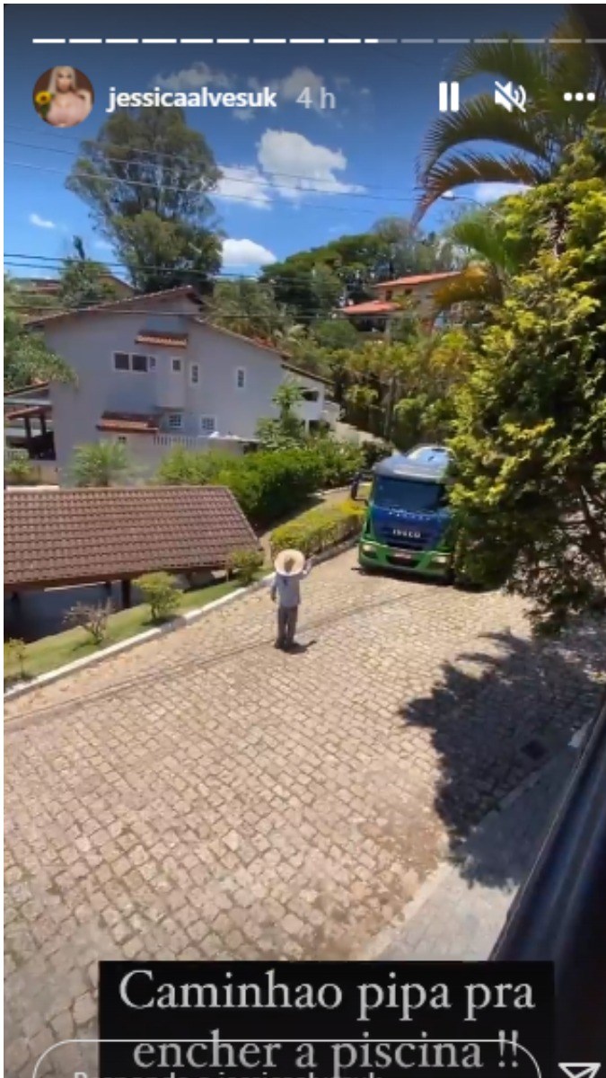 Al exterior cuenta con una piscina, la cual ya llenó de agua con la ayuda de una pipa, dejándola más que lista para cuando el calor de Sao Paulo la obligue a darse un chapuzón para refrescarse.