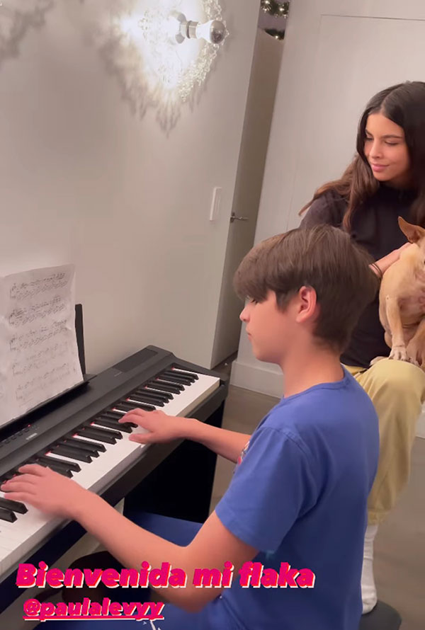 “Bienvenida mi flaca, Paula Levy”, fue el mensaje con el que Ana Bárbara acompañó una fotografía que muestra a la hermana de María Levy en segundo plano cargando un perro, mientras que en primero se aprecia a José María tocando el piano.