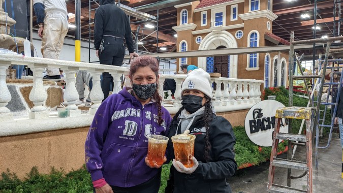 A unos pies de distancia en la carroza de The Bachelor se encontraban las hermanas de origen mexicano Rosa Escobar y Martha Pelayo. Ambas trabajan para la compañía creadora de las carrozas Artistic Entertainment Services.