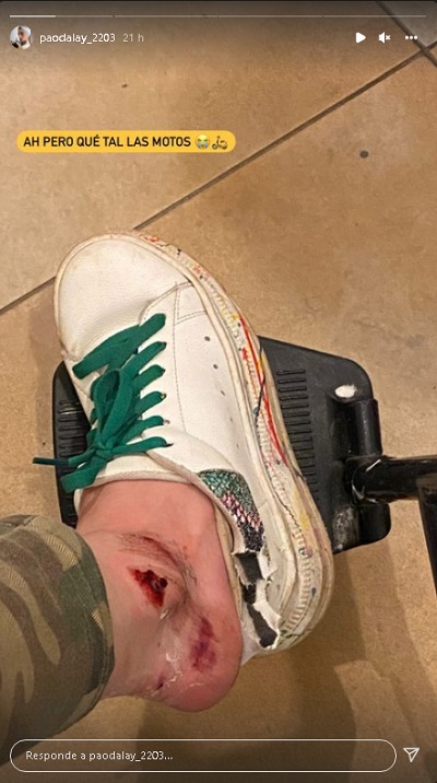 Heridas en la pierna derecha y tobillo fueron algunas de las lesiones más notorias que la joven mostró a sus más de 140 mil seguidores a través de varias historias que no tardaron en viralizarse en redes.