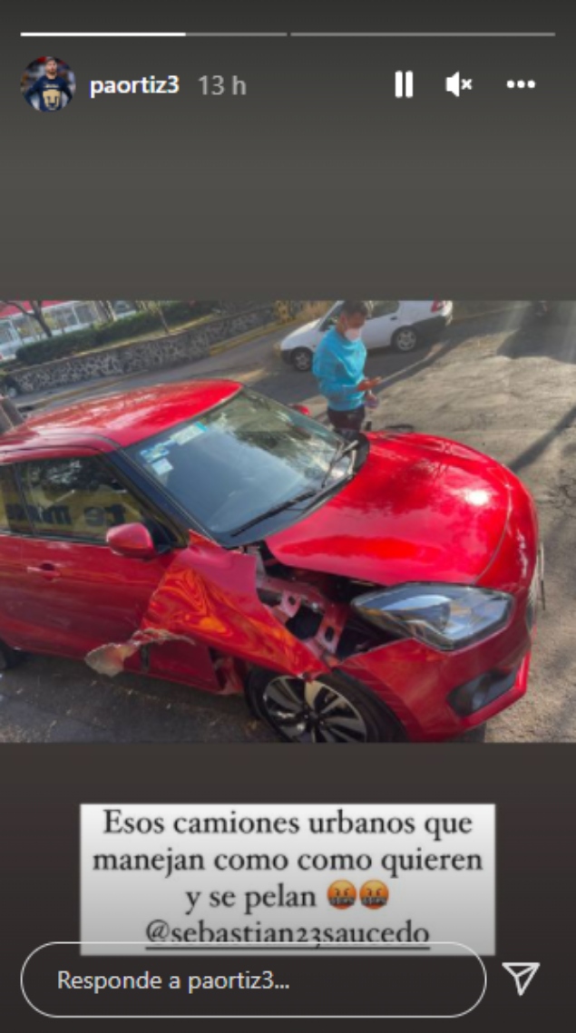 “Esos camiones urbanos que manejan como quieren y se pelan”, dijo Ortiz por sus historias de Instagram, etiquetando a su compañero Sebastián Saucedo.