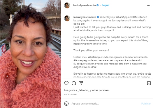 “Él va al hospital todos los meses para hacerse una evaluación general, por lo que pueden esperar que ese tipo de cosas (hospitalizaciones) ocurren de vez en cuando. Gracias a todos por la preocupación”, agregó Kely Nascimento a través de su cuenta en Instagram.