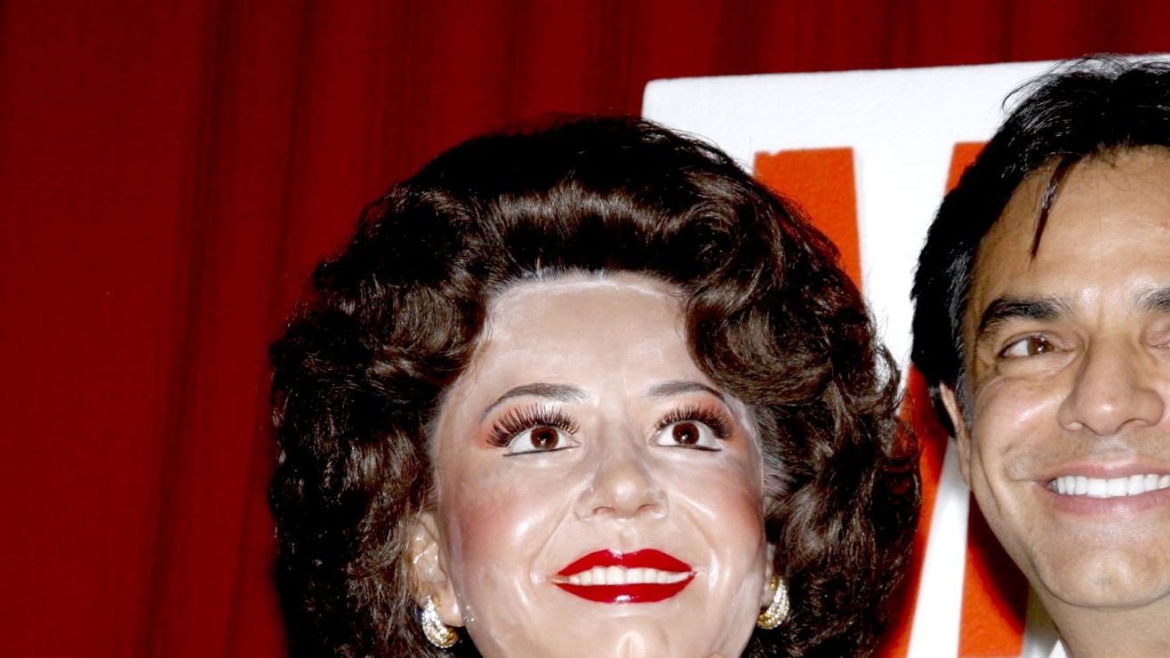 Eugenio Derbez y la escultura de cera en honor a su madre, Silvia Derbez. Crédito: Mezcalent