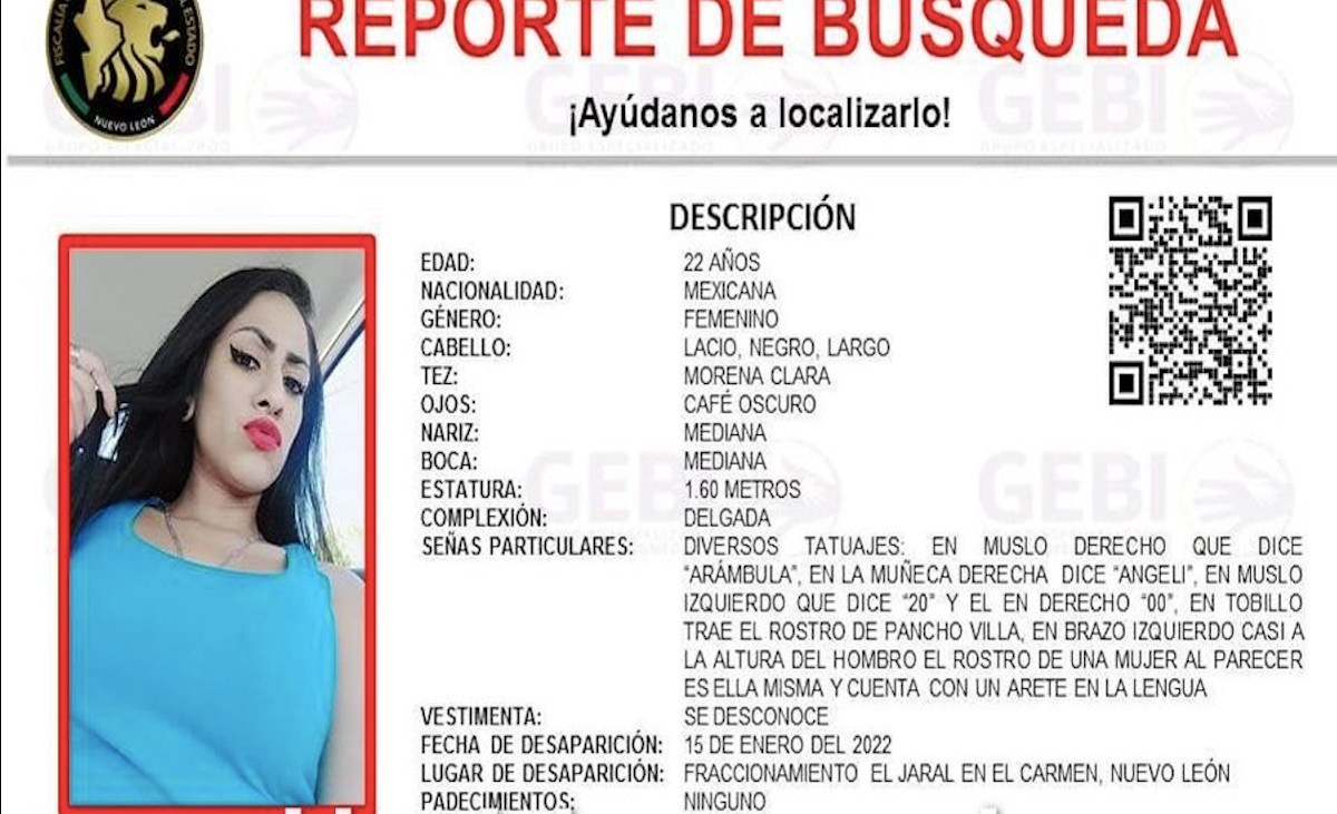 Ya identificaron el primero de los 10 cuerpos hallados en una narcofosa del Cártel de Sinaloa (CDS) en Nuevo León, al norte de México. De acuerdo con la policía mexicana, una joven de 22 años que había sido reportada como desaparecida, su nombre es Naomi Elizabeth García. El 16 de enero fue la última vez que la vieron en la alcaldía de Escobedo.