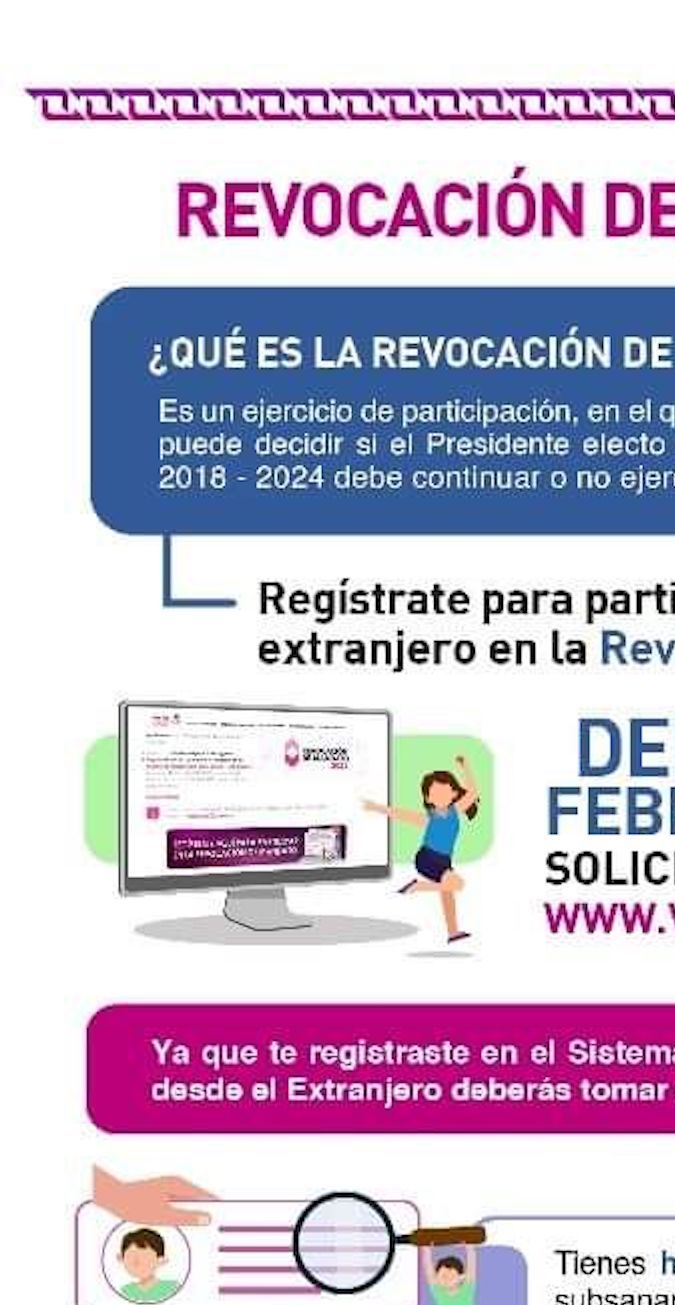 Añadió que para registrarse en las listas nominales para el proceso de revocación de mando, los mexicanos que residen en el exterior pueden utilizar su credencial de elector expedida en los consulados o en México.