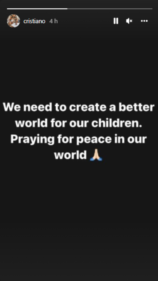 Haciendo uso de las historias de Instagram, ‘CR7’ compartió unas líneas de lo que desea para el mundo y seguramente el anhelo de la gran mayoría de quienes le admiran: