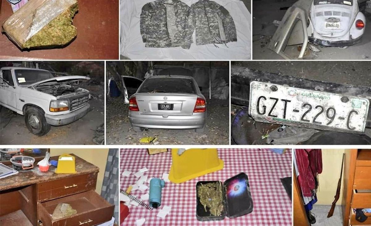En las fotografías que difundió la Fiscalía de Morelos, aparecen más de 20 vehículos con reporte de robo, que estaban a punto de ser modificados con blindaje artesanal, uniformes militares y de la Marina, armas largas, marihuana, cocaína y chalecos antibalas. De acuerdo con las autoridades mexicanas, el terreno era usado como casa de seguridad, donde llevaban a las víctimas de secuestro y a los sicarios rivales que lograban retener.