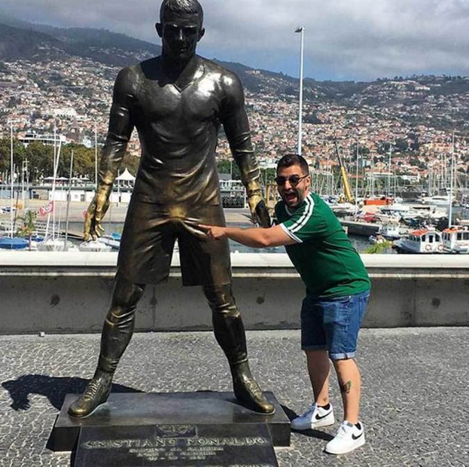 Con todo el respeto, admiración y amor hacia su ídolo, la Asamblea Legislativa Regional destinó los fondos para que se esculpiera, pero al parecer esto no fue suficiente: en la parte baja de la estatua sobresalían los testículos de Cristiano Ronaldo.