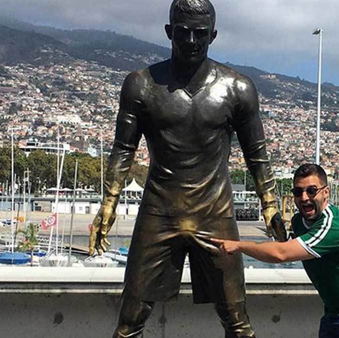 Con todo el respeto, admiración y amor hacia su ídolo, la Asamblea Legislativa Regional destinó los fondos para que se esculpiera, pero al parecer esto no fue suficiente: en la parte baja de la estatua sobresalían los testículos de Cristiano Ronaldo.