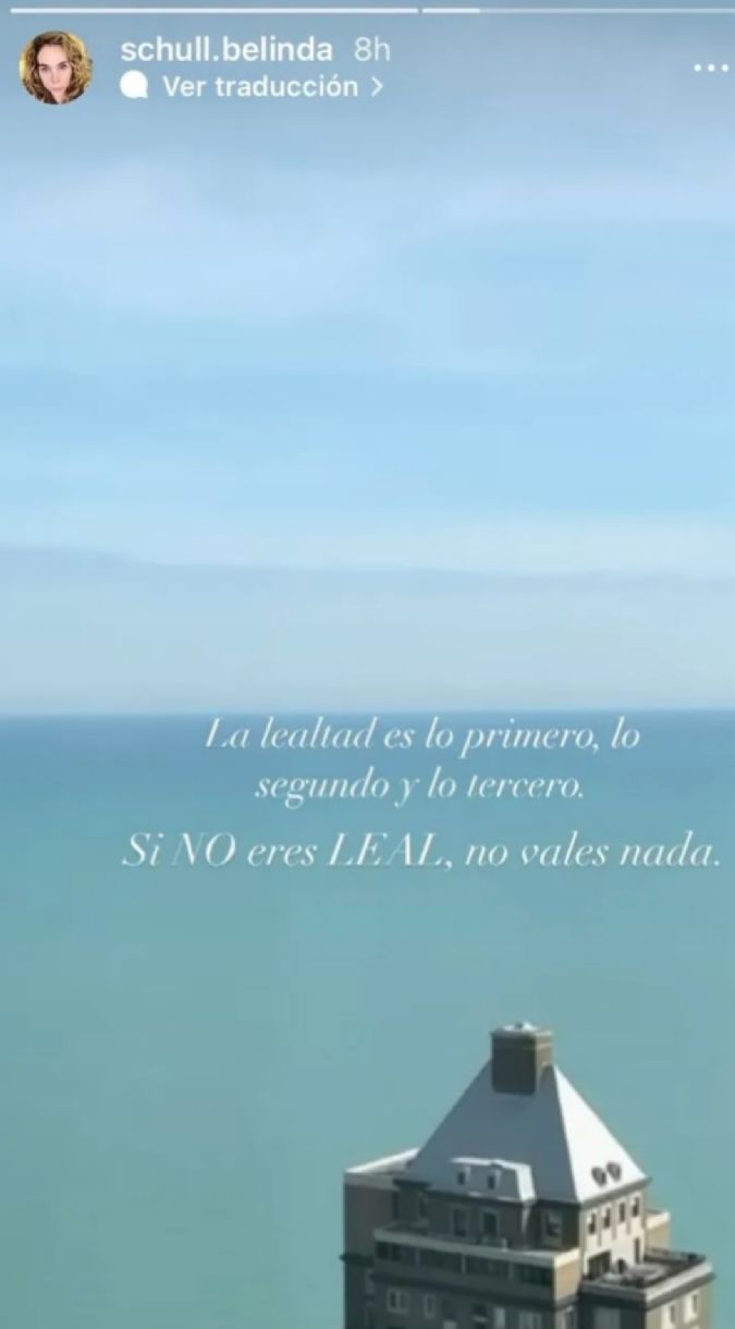 Pero en esta ocasión, Belinda Schüll decidió publicar en una de sus InstaStories una imagen en la cual destaca un potente mensaje que hace alusión a la importancia de la lealtad: “La lealtad es lo primero, lo segundo y lo tercero, si no eres leal, no vales nada”. Por lo que de manera inmediata muchos fanáticos del sonorense aseguraron que había sido escrito para que él lo leyera.