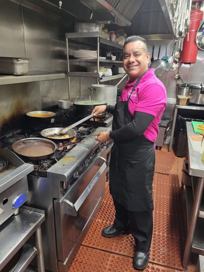 “Gracias a Dios, a pesar de todo, la gente está regresando a comer a los restaurantes. Nosotros tenemos de regreso al 80% de los clientes comparado a como estábamos antes de la pandemia. Y estamos trabajando con menos empleados de los que teníamos”.