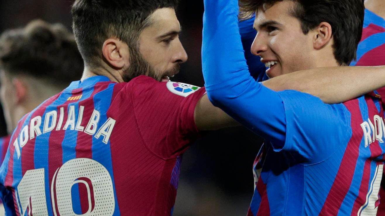 Riqui Puig y Jordi Alba celebran la victoria del Barcelona. Crédito: EFE