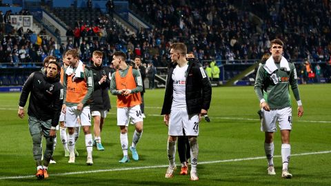 Posteriormente, los jugadores el Bochum se mantuvieron en el campo tratando de pedir comprensión a los aficionados asistentes, al mismo tiempo que respondían a los insultos y cánticos contra los futbolistas locales.