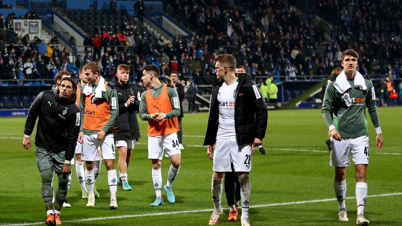Los jugadores del 'Gladbach, se retiraron de la cancha. Crédito: Getty Images