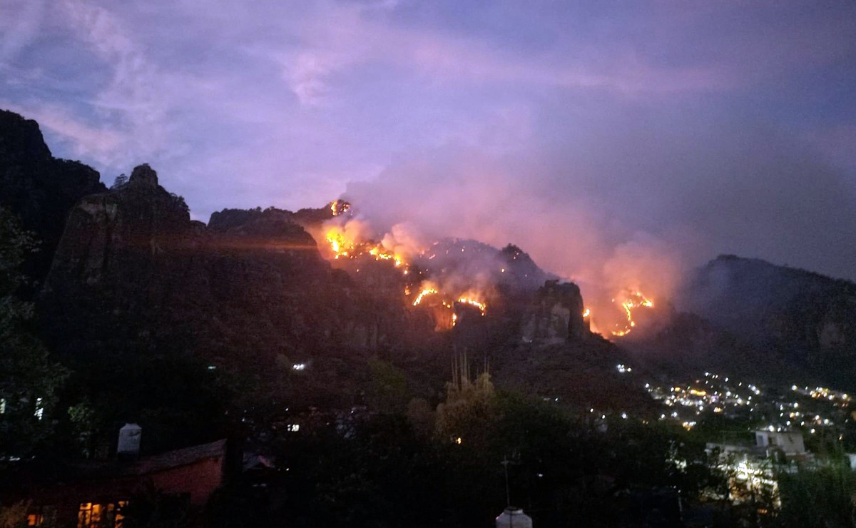 El incendio en el cerro del Tepozteco comenzó el martes al mediodía y durante la noche se propagó. Actualmente trabajan más de 100 brigadistas en la extinción del fuego, a los que se suman las aeronaves del Ejército y de la Guardia Nacional.
