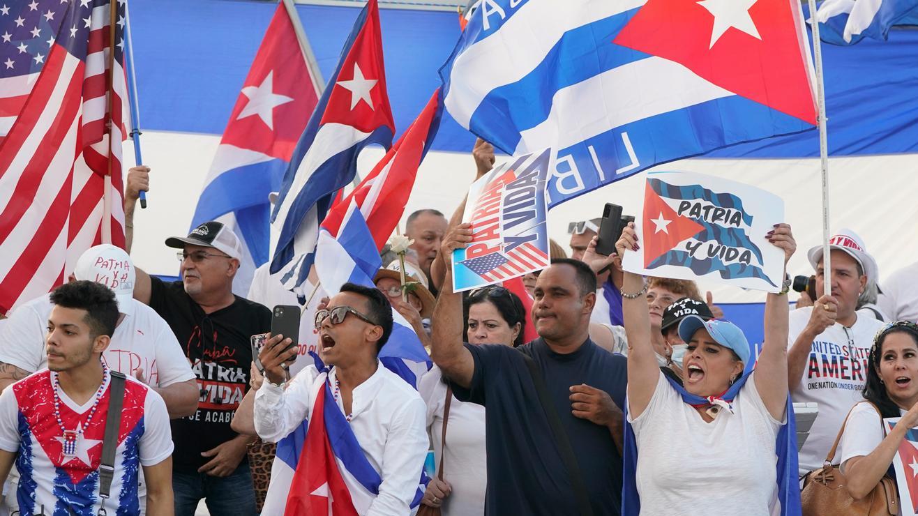 Manifestación en Miami a favor de las protestas antigubernamentales en Cuba en una imagen del pasado 15 de noviembre. Crédito: WILFREDO LEE/AP/PICTURE ALLIANCE | Deutsche Welle