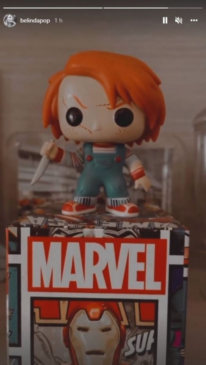 La también actriz vuelve a causar sorpresa, pues este viernes publicó una fotografía en sus historias de Instagram en la que dejó ver un funko de “Chucky”, personaje con el que la intérprete y su ex pareja se identificaban, al grado de que Belinda le regaló a Nodal algunos coleccionables del llamado “muñeco diabólico”.