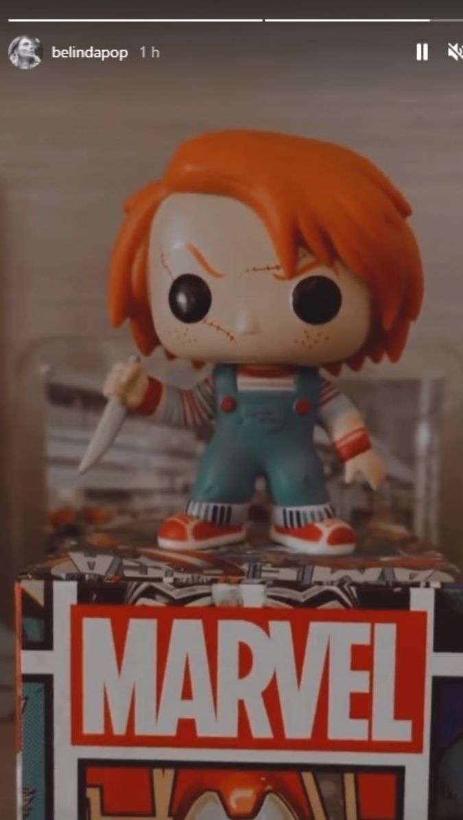 La también actriz vuelve a causar sorpresa, pues este viernes publicó una fotografía en sus historias de Instagram en la que dejó ver un funko de “Chucky”, personaje con el que la intérprete y su ex pareja se identificaban, al grado de que Belinda le regaló a Nodal algunos coleccionables del llamado “muñeco diabólico”.