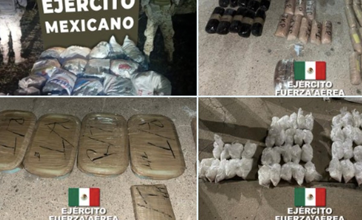 Militares mexicanos le dieron un golpe al narcotráfico en el estado fronterizo de Sonora, donde aseguró 1,102 libras de drogas; entre ellas fentanilo, cocaína, metanfetaminas y heroína, durante un operativo por aire y tierra. La Secretaría de la Defensa Nacional (Sedena) informó que detectó una aeronave que estaba realizando una ruta no identificada, así que ordenó el despliegue de un par de helicópteros y patrullas, de inmediato halló una pista clandestina, donde aterrizó la unidad.