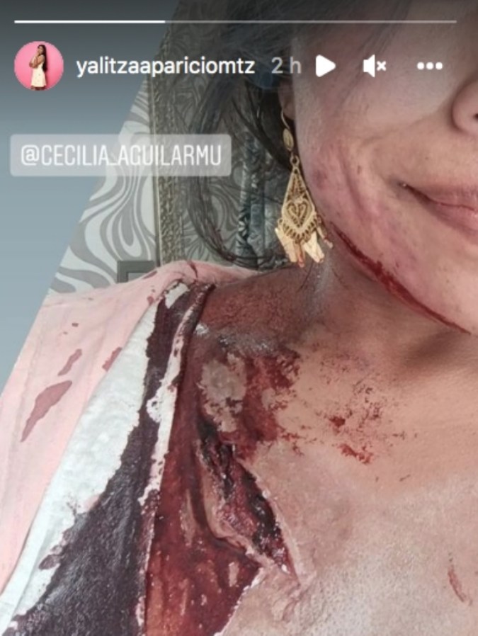 La actriz nominada al Óscar, Yalitza Aparicio, dejó ver a través de sus historias de Instagram una terrible imagen de su hombro y parte de su pecho: una enorme herida profunda. Se le puede ver la piel desgarrada, parte del músculo y mucha sangre. Incluso se puede observar que trae el rostro manchado de rojo.