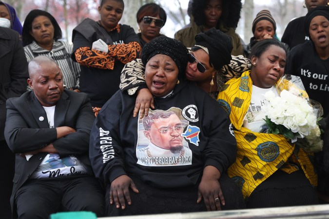 Los familiares, amigos y otros dolientes de Lyoya en Renaissance Church of God in Christ, estaban vestidos con camisetas o sudaderas con una imagen de Lyoya, se pusieron de pie y aplaudieron.