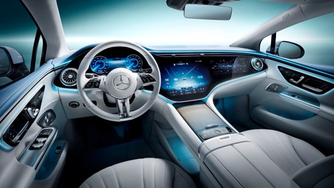 En su interior la cabina tiene mucha similitud con la del EQS. El sistema Atmos de audio de Burmester no está disponible aquí, por ejemplo. El interior agrega una pulgada de espacio para los hombros en la parte delantera y tres pulgadas de largo total en comparación con el Clase E actual.