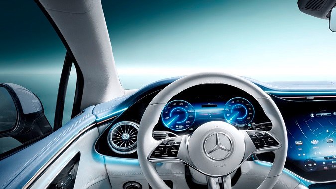 En su interior la cabina tiene mucha similitud con la del EQS. El sistema Atmos de audio de Burmester no está disponible aquí, por ejemplo. El interior agrega una pulgada de espacio para los hombros en la parte delantera y tres pulgadas de largo total en comparación con el Clase E actual.