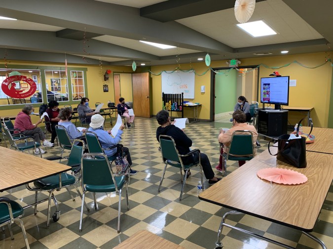 “Estoy muy contenta de que hayan reabierto porque vivo sola y me hacía mucha falta la comunicación con mis amigas”, dice Luz Escobar, una salvadoreña de 92 años, quien a diario acude al centro comunitario para adultos mayores St Barnabas Senior Services.