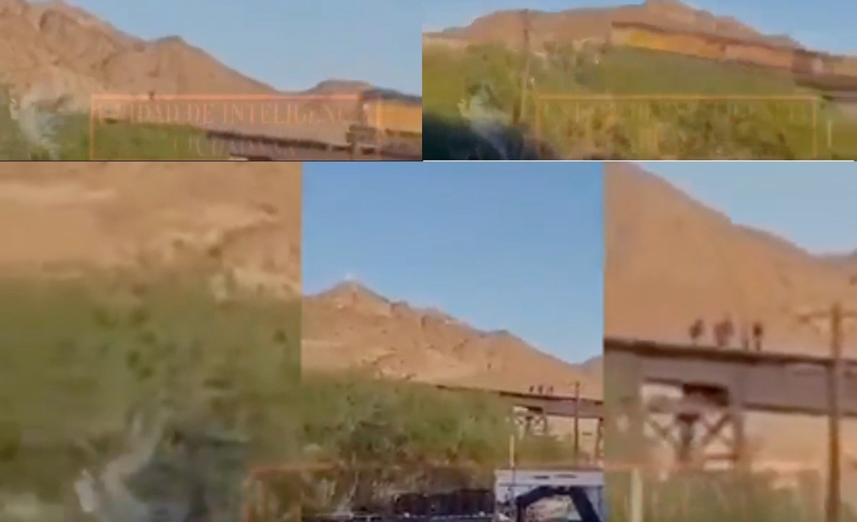 Migrantes se salvan de ser arrollados por un tren en la frontera. Crédito: Capturas tomadas del video de @DeIntelligencia | Cortesía