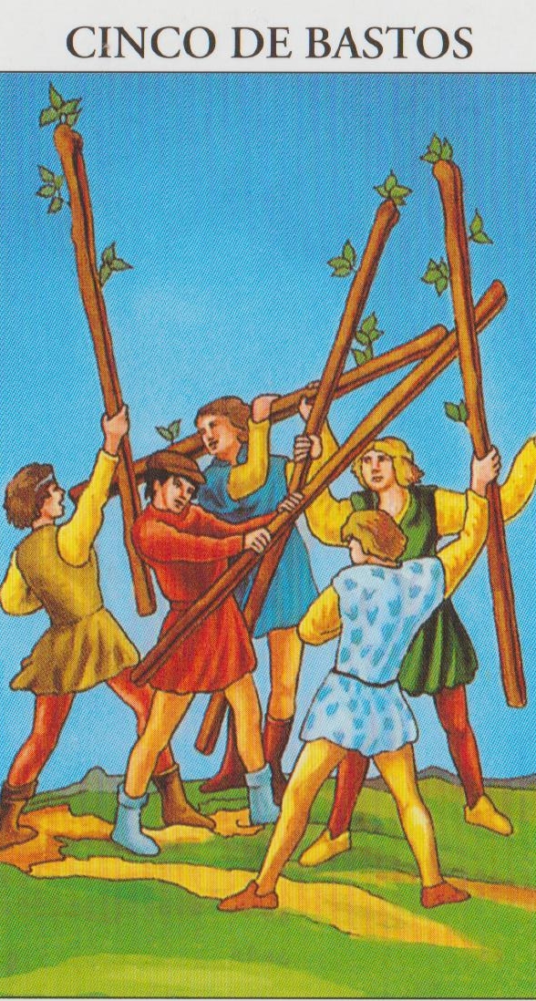 1. Cinco de Bastos: Grandes enseñanzas se avecinan, pero solo y solamente serán enseñanzas si nadie logra sacarte de tu centro. No te involucres en chismes, no hables mal de nadie, es momento de decir las cosas de frente y esto te evitará grandes problemas en el futuro. Te puedes enfrentar a situaciones caóticas al momento de tomar decisiones en lo que se refiere al trabajo, no importando que tengas la razón, necesitas aprender a trabajar en equipo, no discutas, guarda tus enojos, trabajando en conjunto lograrás más que alejándote y queriendo trabajar tu solo, tu sola. Queda como el que une esfuerzos para hacer de todo proyecto sea aún más productivo, si así lo haces, espera grandes y fructíferos cambios. Cuida de tus posesiones, no es momento de vender o comprar, puedes sufrir perdidas muy difíciles de recuperar. Si hay problemas en la familia o con amigos no se resolverán pronto, debes tener paciencia y hacer uso de la razón para que en algún punto todo vuelva a ser armonía. En el amor no intentes arreglar nada esta semana, solo lo podrías empeorar, así que sé paciente y espera a la próxima semana, este tiempo te dará el chace de también mirar tus fallas. En la salud necesitas seguir cuidando de viejas molestias. No caigas en tentaciones y sigue cuidando tu dieta, sigue cuidando de no caer en viejos vicios.