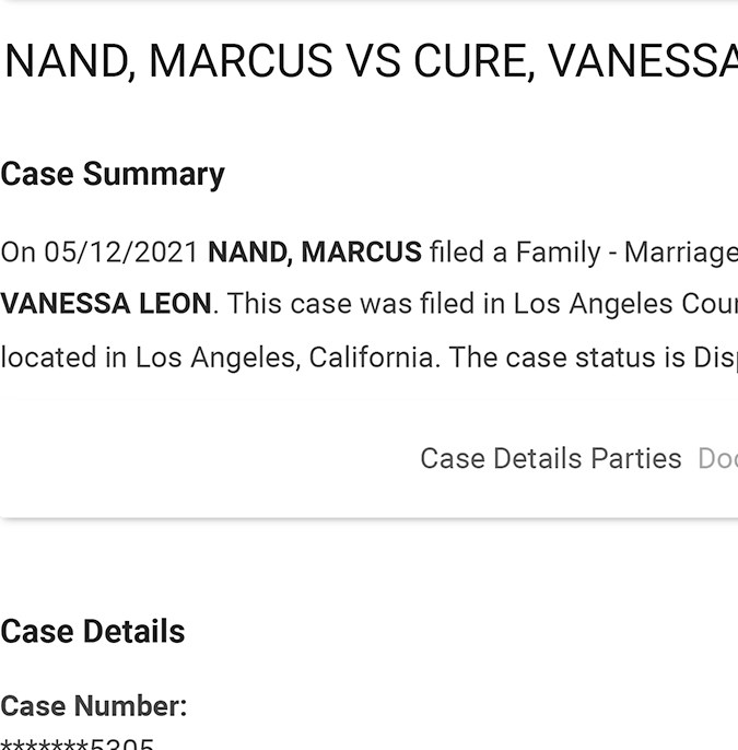 Pudimos acceder a los papeles de la corte de Los Angeles, y descubrimos que 5 días después que anunciaran su compromiso, Nand le entabló la demanda de divorcio a Vanessa, cuyo proceso terminó en enero del 2022.
