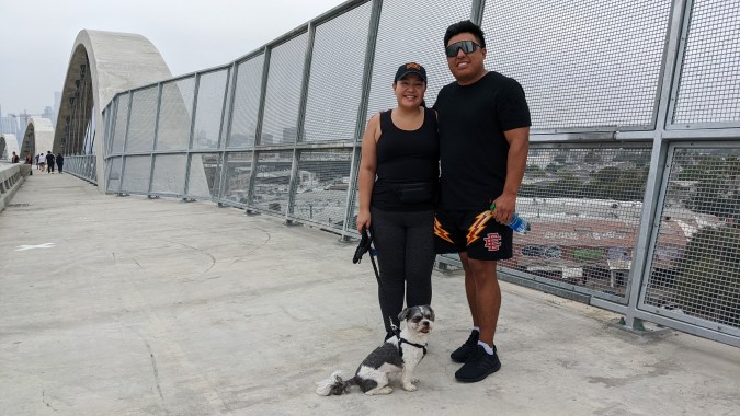 El icónico puente que une a Boyle Heights con el Distrito de las Artes en el centro de Los Ángeles demostraba un ambiente agradable el domingo por la mañana. A lo lejos se veían personas haciendo ejercicio, otros iban en sus bicicletas y algunos más tomaban fotos. Todos admirando la belleza del nuevo punto destacado de la ciudad.