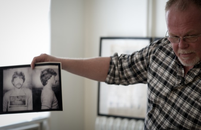 Kirk Bloodsworth (52) muestra una foto de sí mismo durante el momento de su arresto durante una entrevista en su apartamento en Mount Rainier, Maryland, el 26 de septiembre de 2012. Crédito: MLADEN ANTONOV | AFP / Getty Images