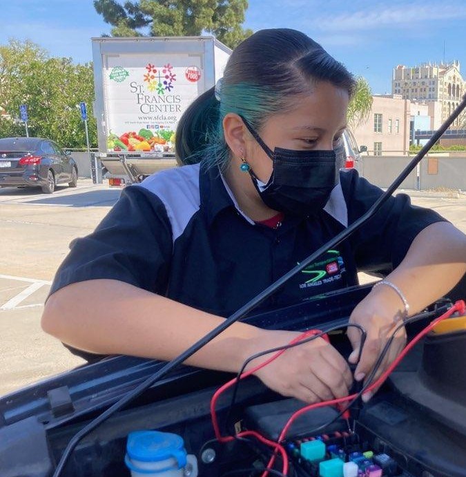 Natalia Hernández, de 19 años, estudia en el colegio Los Ángeles Trade Tech y trabaja en una compañía de autos en el centro de Los Ángeles. Su objetivo es ser ingeniera de automóviles y planea transferirse a la universidad en cuanto termine sus dos años de colegio comunitario.