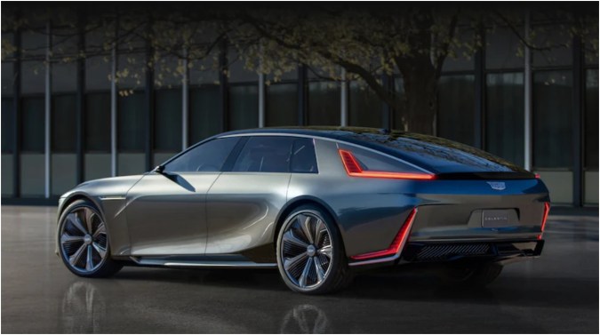 Los faros de luces LED cuentan con un diseño único y llamativo, llevándose parte de la atención desde la perspectiva trasera del Celestiq, donde la imagen completa sobre el nuevo coche de Cadillac solo muestra la zona lateral y trasera del auto.