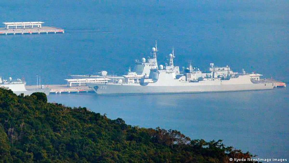 Buque de guerra chino tipo 052C en la base de la isla china de Hainan Crédito: KYODO NEWS/IMAGO IMAGES | copyright