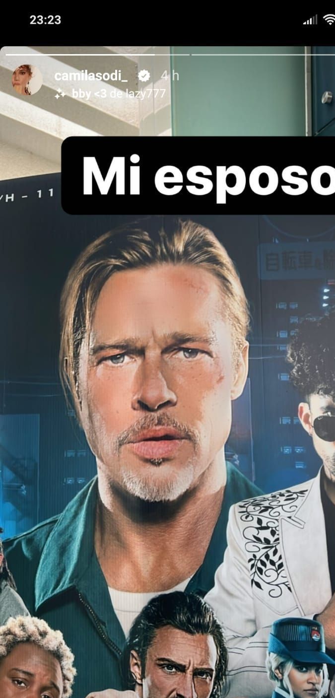 Camila usó sus stories de la red social hacia su colega, el actor Brad Pitt. Ella compartió una foto del afiche promocional de la película ‘Bullet Train’ protagonizada por el el aclamado y codiciado actor y escribió sin filtros “Mi esposo” declarando de este modo la inmensa admiración ¿y amor? que tiene hacia él.