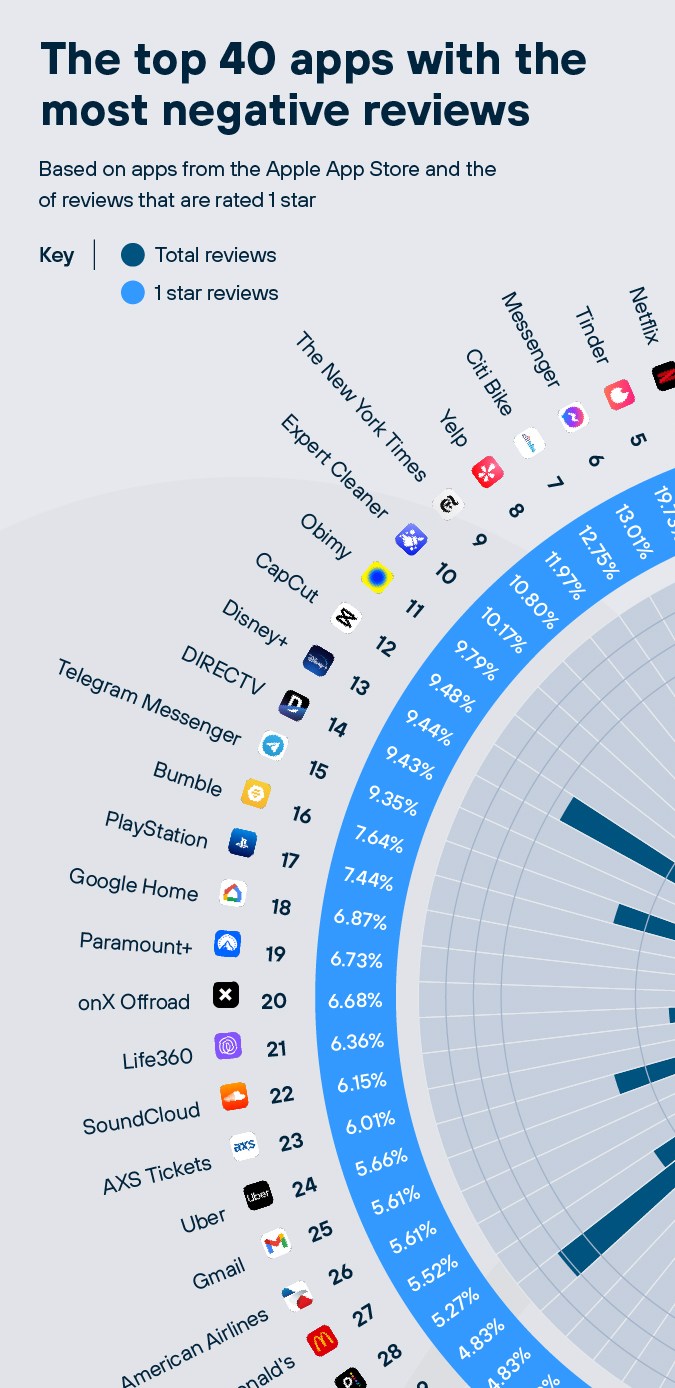 Aplicaciones de redes sociales, plataformas de streaming y citas son algunas de las peor valoradas por los usuarios de Apple este año 2022