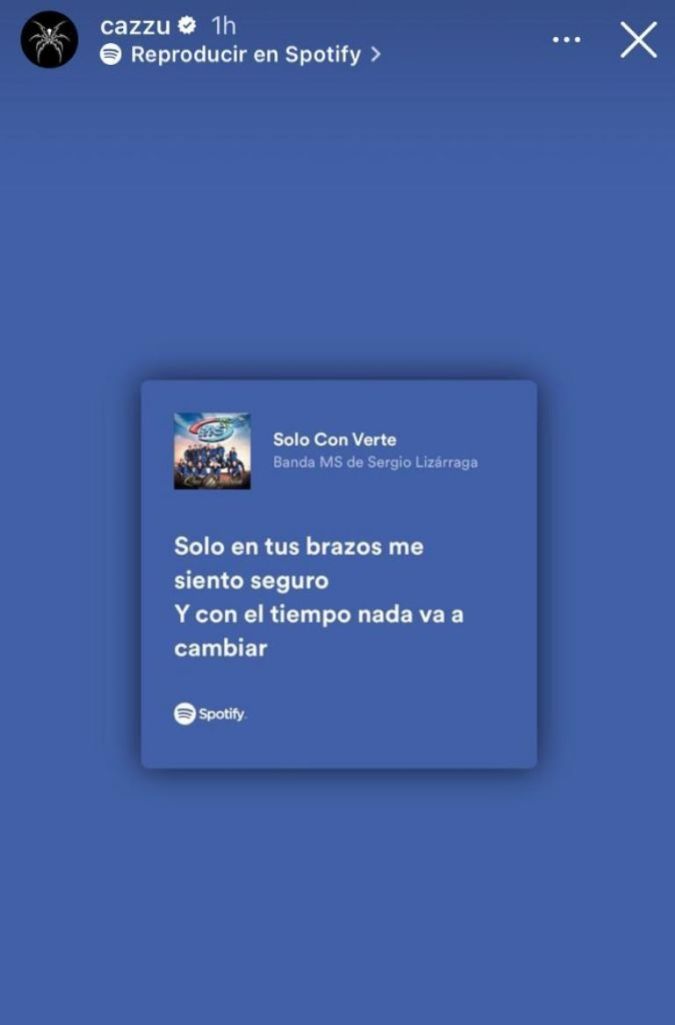 Cazzu utilizó sus historias en Instagram para dar a conocer con sus más de 10.4 millones de seguidores un tema de Banda MS que al parecer le gusta mucho, se trata de “Solo con verte”, un éxito de la agrupación originaria de Mazatlán, Sinaloa.