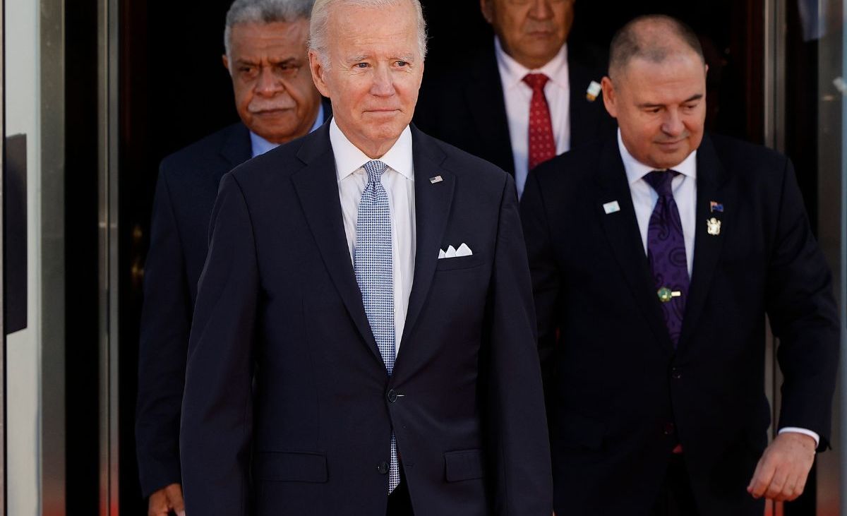 El presidente de Estados Unidos, Joe Biden, dirige a un grupo de líderes de la región de las Islas del Pacífico hacia el Pórtico Norte. Crédito: Chip Somodevilla | Getty Images